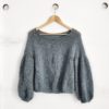 Tricoté dans un mélange de fils pour un résultat doux et un peu aéré pour un rendu fluide.